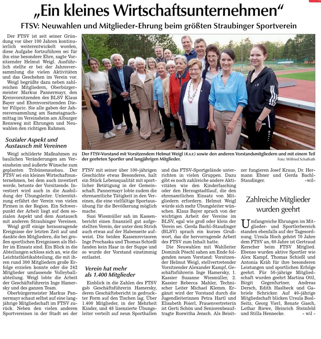 Weigl schilderte Maßnahmen zu baulichen Veränderungen am Vereinsheim und äußerte Wünsche zum geplanten Tribünenausbau. Der FTSV sei ein kleines Wirtschaftsunternehmen, bei dem auch investiert werde, betonte der Vorsitzende. Investiert wird auch in die Ausbildung der Übungsleiter. Unterstützung erfährt der Verein von vielen Firmen in der Region. Ein Schwerpunkt der Arbeit liegt auf dem sozialen Aspekt und dem Austausch mit anderen Straubinger Vereinen.